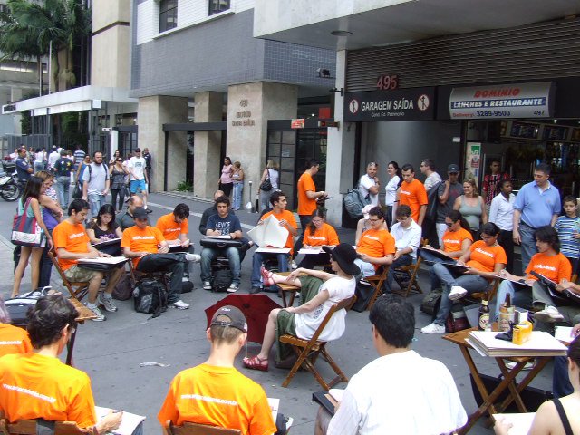 Neste evento, os participantes sentavam no meio da calçada da Av. Paulista, 509 e simplismente rabiscavam.
